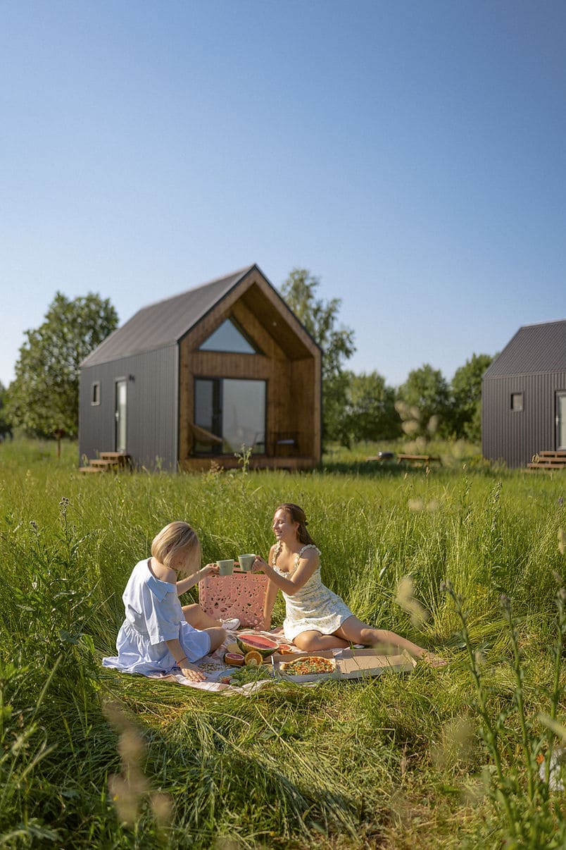 Отличное место! Были в июле, в земляничный сезон, и это, конечно, особый кайф, когда буквально в двух шагах от домика можно набрать горсть земляники к завтраку)) Домики удобные, продуманные, со стильным дизайном. Очень порадовало наличие посудомойки. Понимая, что едем на природу, набрали с собой репеллентов, и были искренне тронуты тем, что на всякий случай в домике уже есть аэрозоли от комаров и прочей живности) Порадовал и бесплатный прокат великов -- с удовольствием покатались по окрестностям. Периодически приходил с инспекцией кот Пётр (особенно если начать жарить шашлык), но вёл себя вполне деликатно))) Кстати, предложенная вода его радует ничуть не меньше (а, пожалуй, что и больше), чем кусочек мяса или колбаски))